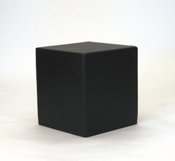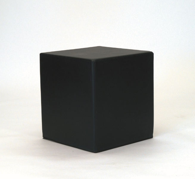 Pouf quadrato in similpelle nera, design Csilla Gabor